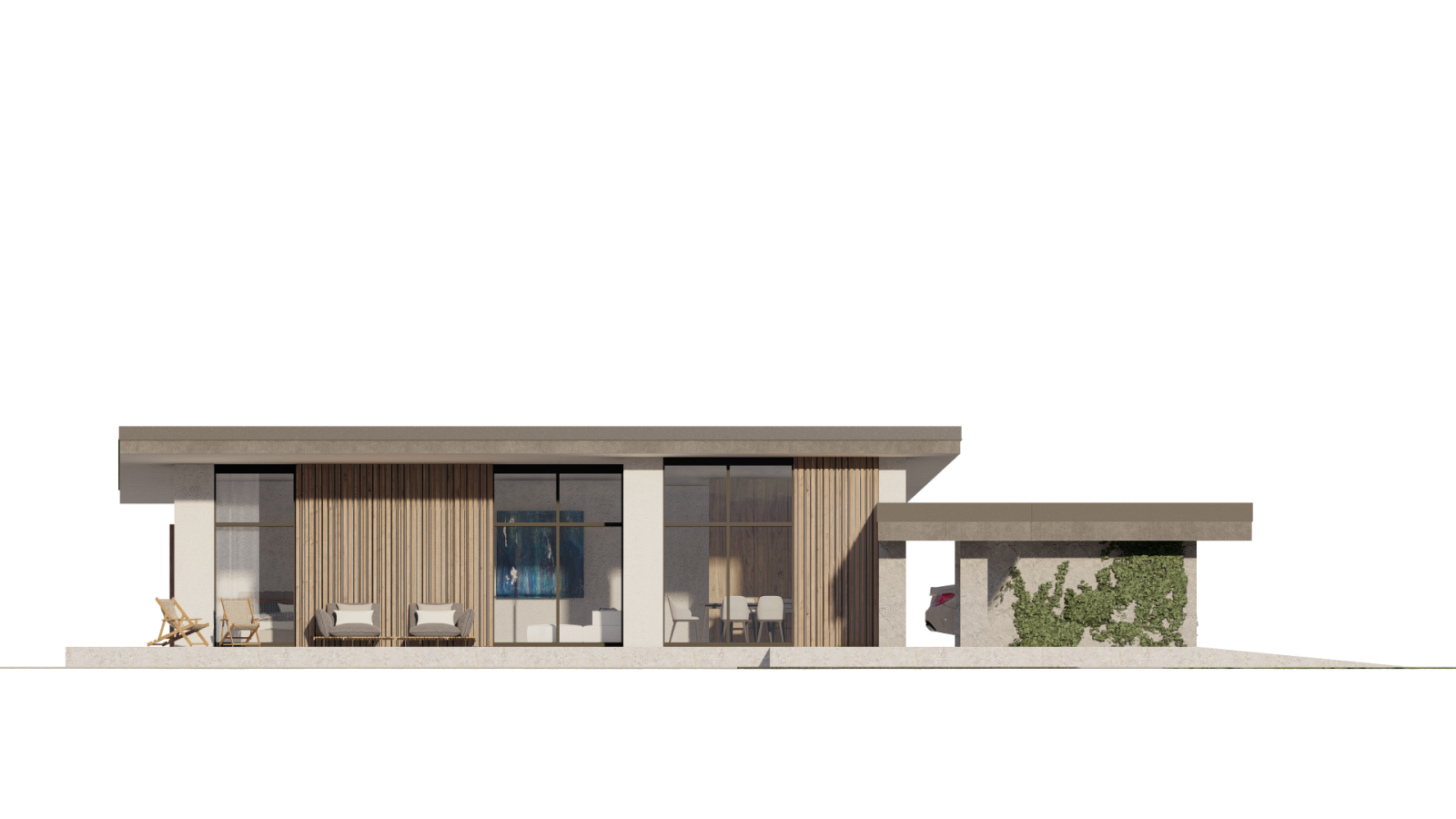 W domu zainstalowano duże okna aluminiowe, które obejmują przestrzeń od podłogi aż do sufitu, gwarantując tym samym znakomite doświetlenie pomieszczeń.